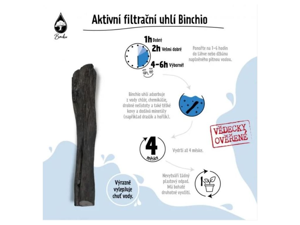 - Tyčinka Binchio je 100% přírodní filtr vody