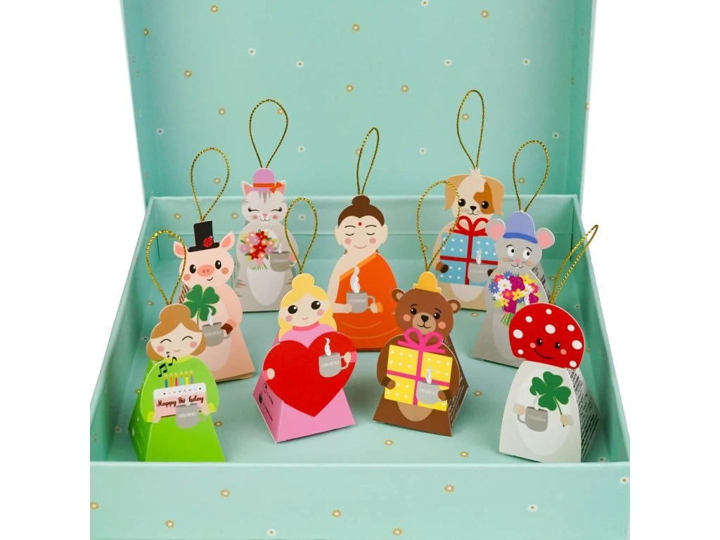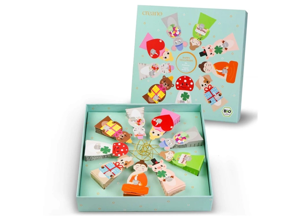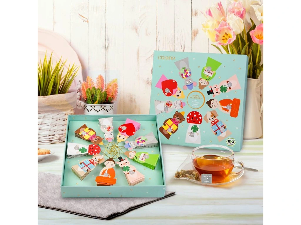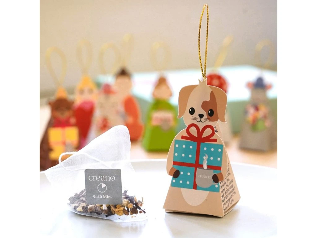 Dárková sada bio bylinného čaje Creano „Tea Lovers" je naprosto originální kombinací skvělého čaje a roztomilé dekorace. Každý z 9 pyramidových sáčků má tvar milé figurky s praktickým ramínkem – lze je pověsit na kytici, použít jako výplň do adventního kalendáře, pro Tajného Santu nebo jako malý dárek ke každé příležitosti.