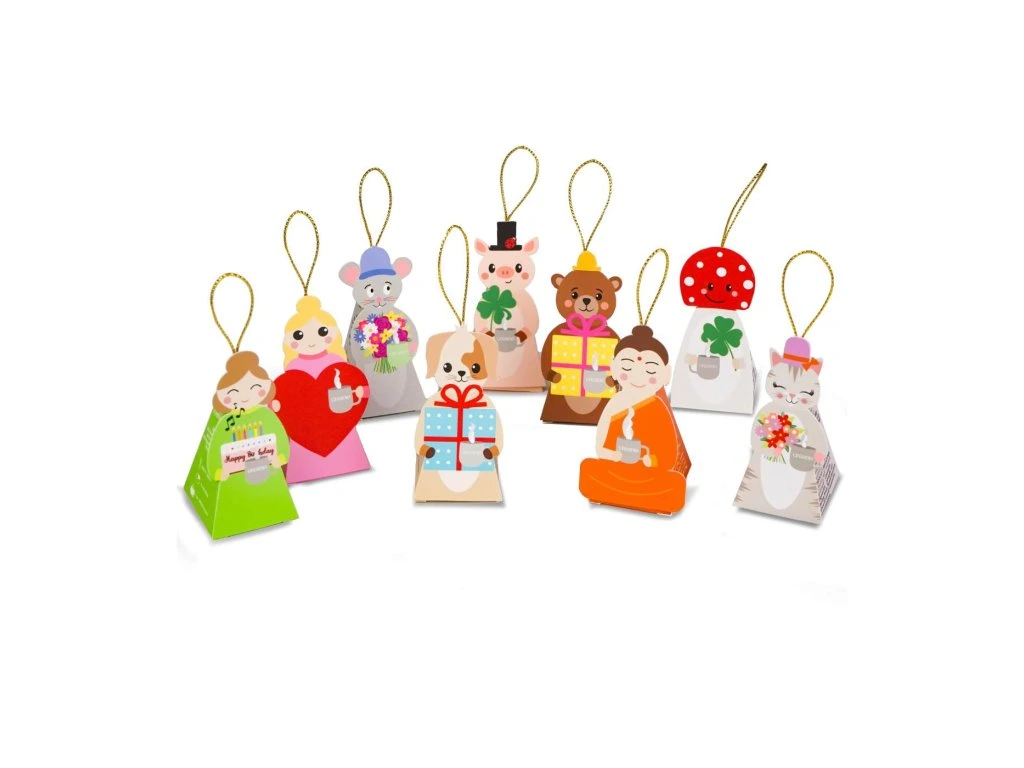 9 roztomilých pyramidových sáčků ve tvaru figurek s ramínkem
