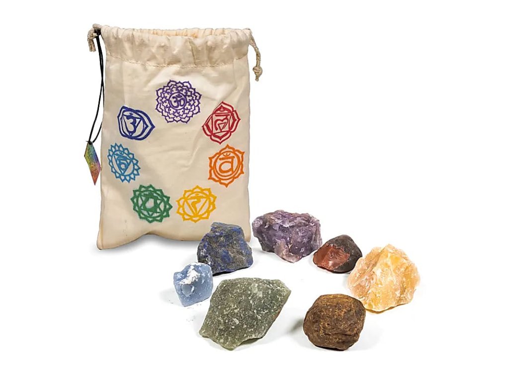 Sada 7 čakrových kamenů v bavlněném pytlíčku je ideální nástroj pro obnovení rovnováhy čaker a práci s energií. Kameny lze položit na odpovídající místa těla při gemstoterápii nebo je nosíte s sebou pro podporu energetického toku po celý den.