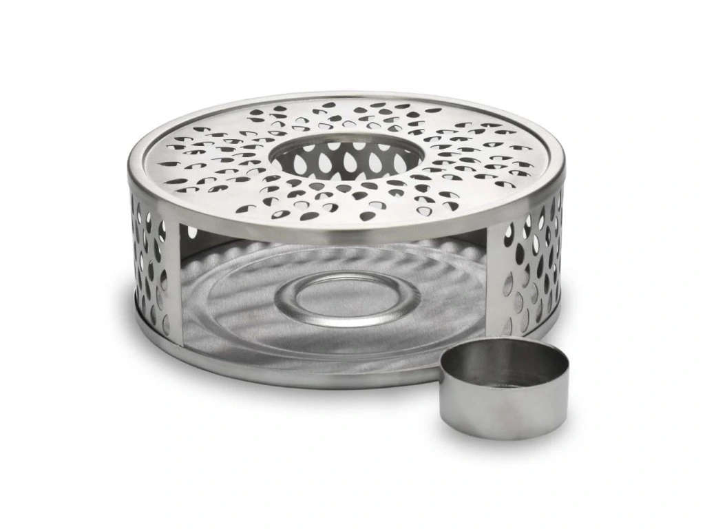 Ohřívač čajových konvic „Leaf" – stříbrný, nerezová ocel + držák na čajovou svíčku