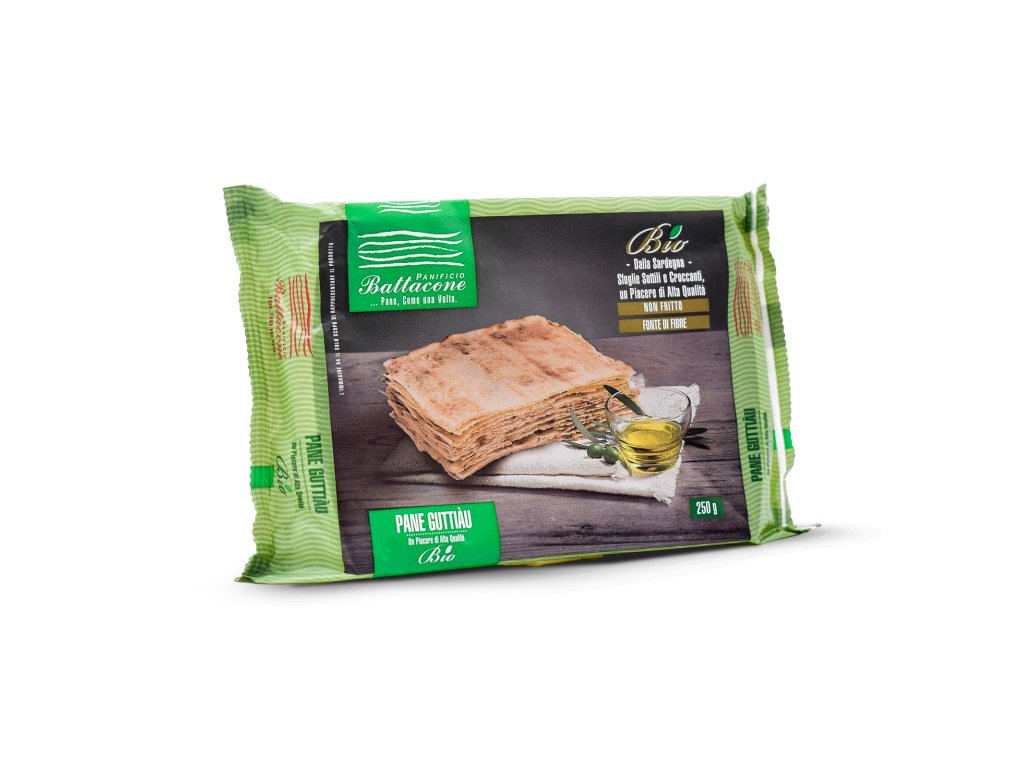 Pane Carasatu Guttiàu Bio s hmotnosťou 250 g je ideálny ako príloha ku všetkým jedlám s výraznejšou chuťou a je vhodný aj na prípravu originálnych chuťoviek a živých aperitívov k syrom alebo zelenine.